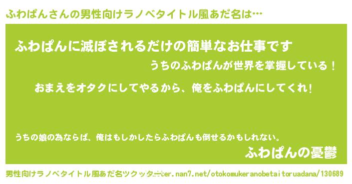 | 女子向けラノベタイトル風あだ名 | 『ふわぱん夫妻のなれそめ』 |