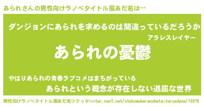 | 胡散臭い通販商品みたいなあだ名 | 『必ず成功する霊験あらたかなお札…その名も「あられ」』 |