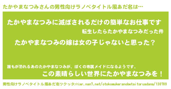 | 女子向けラノベタイトル風あだ名 | 『たかやまなつみ様がみてる』 |