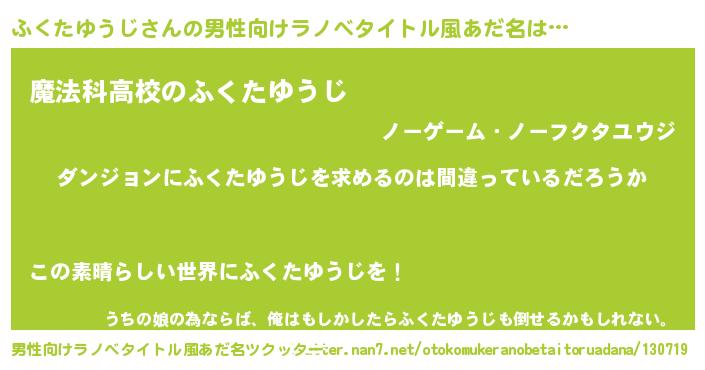 | 女子向けラノベタイトル風あだ名 | 『ふくたゆうじは平凡を望む』 |