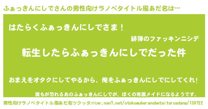 | ヒーロー風カッコイイあだ名 | 『ネオファッキンニシデ』『仮面ファダー』 |