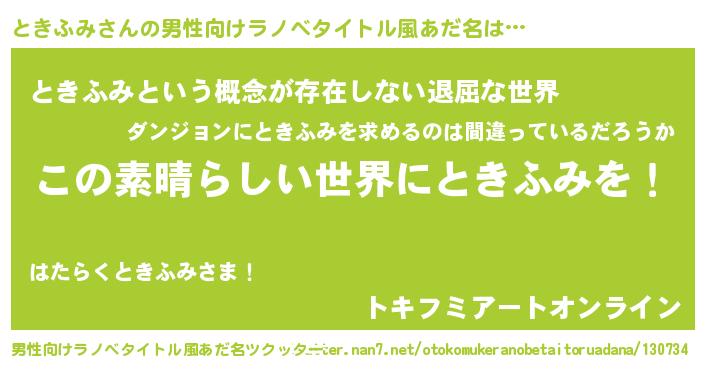 | 胡散臭い通販商品みたいなあだ名 | 『あなたにだけ特別に提供する100年もののヴィンテージワイン…その名も「ときふみ」』 |