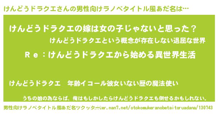 | 女子向けラノベタイトル風あだ名 | 『闇のけんどうドラクエ』 |