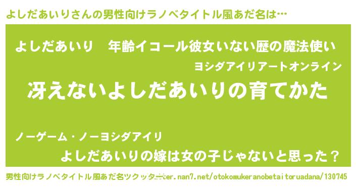 | 女子向けラノベタイトル風あだ名 | 『シンデレラよしだあいり家の靴箱館』 |