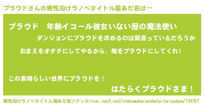 | ヒーロー風カッコイイあだ名 | 『正義の使者プラウド』『炎刃騎士プラ』 |