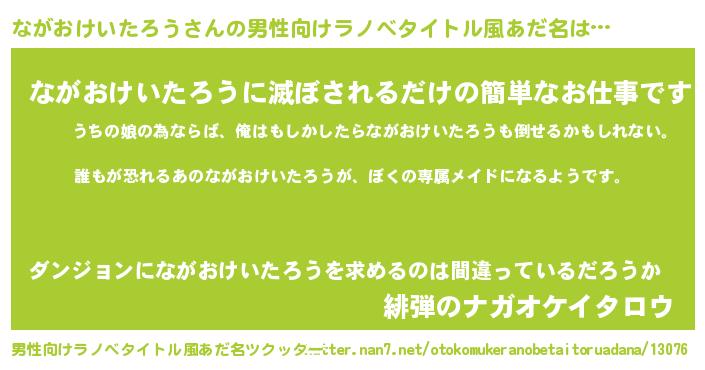 | 胡散臭い通販商品みたいなあだ名 | 『来世でも幸せになれる健康食品…その名も「ながおけいたろう」』 |