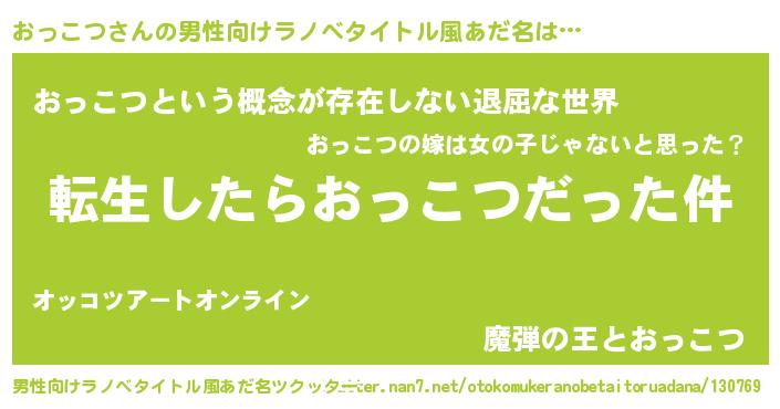 | 胡散臭い通販商品みたいなあだ名 | 『来世でも幸せになれる水素水…その名も「おっこつ」』 |