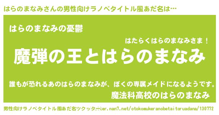 | ヘコむあだ名 | 『はらもー』『はらのまなみ(笑)』 |