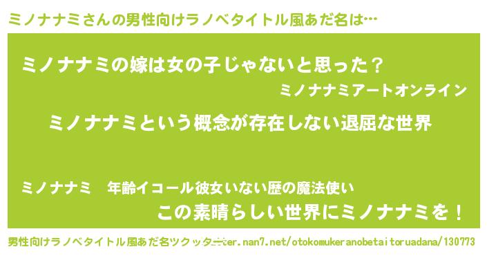 | 女子向けラノベタイトル風あだ名 | 『ミノナナミの契約王妃』 |