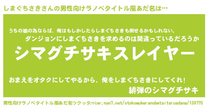 | 料理風あだ名 | 『しまぐちさきごはん』 |