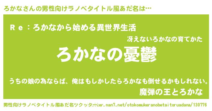 | 胡散臭い通販商品みたいなあだ名 | 『モテモテ間違いなし水晶球…その名も「ろかな」』 |