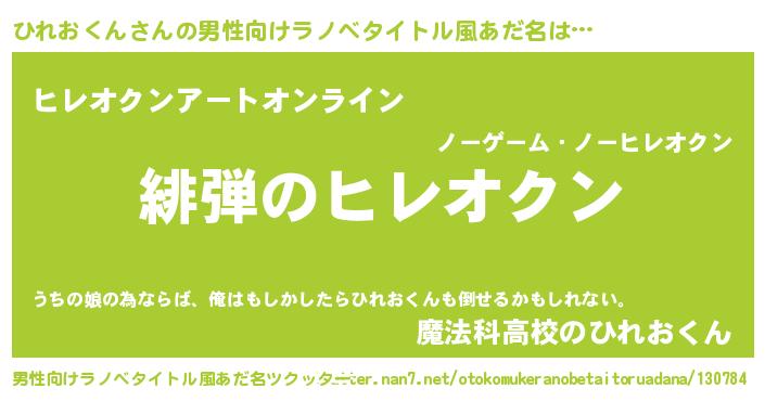 | 女子向けラノベタイトル風あだ名 | 『シンデレラひれおくん家の靴箱館』 |