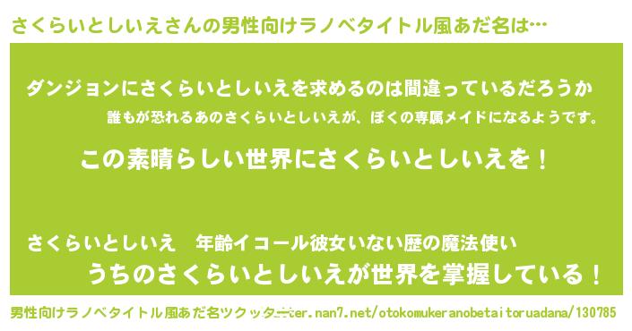 | 意味不明あだ名 | 『住所不定無職さくらいとしいえ(59歳)』 |