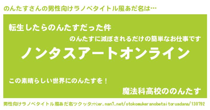| 女子向けラノベタイトル風あだ名 | 『誰かこののんたすを説明してください! ~契約から始まるウェディング~』 |