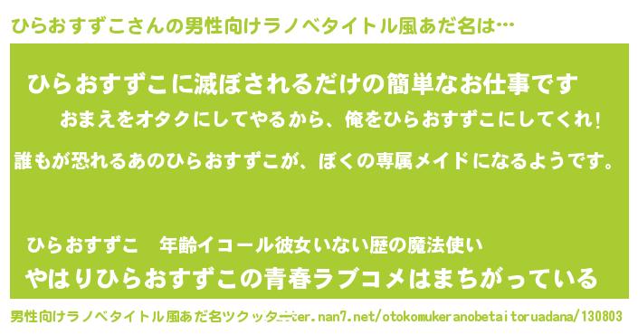 | 胡散臭い通販商品みたいなあだ名 | 『来世でも幸せになれる健康食品…その名も「ひらおすずこ」』 |