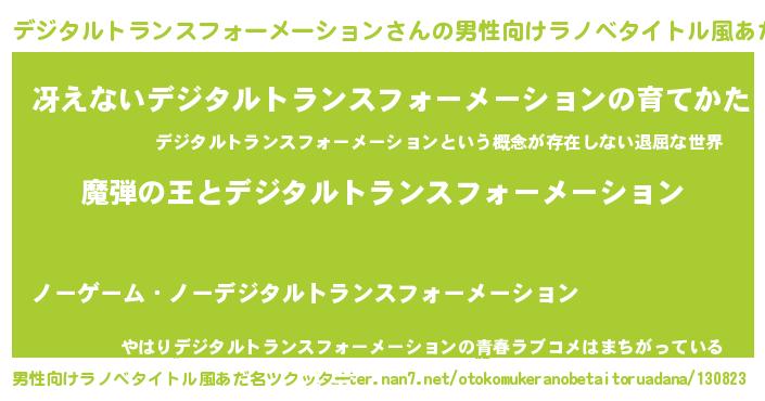 | 女子向けラノベタイトル風あだ名 | 『デジタルトランスフォーメーションが死なない童話 林檎のデジタルトランスフォーメーションの診療簿』 |