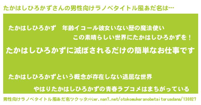 | 女子向けラノベタイトル風あだ名 | 『横柄たかはしひろかずと宰相陛下』 |