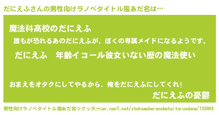 | 伝説のあだ名 | 『封印されし竜騎士だにえふ』 |