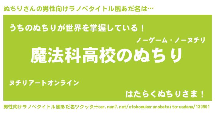 | 女子向けラノベタイトル風あだ名 | 『ぬちりなんてお断りですっ。』 |