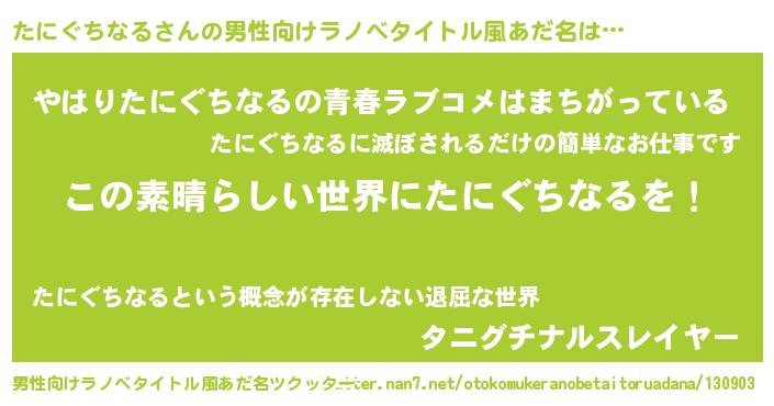 | 胡散臭い通販商品みたいなあだ名 | 『あなたにだけ特別に提供する100年もののヴィンテージワイン…その名も「たにぐちなる」』 |