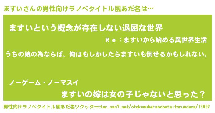 | 胡散臭い通販商品みたいなあだ名 | 『運命の人と巡り会える高級そうな皿…その名も「ますい」』 |