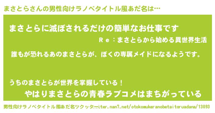 | ヘコむあだ名 | 『まさとら(笑)』『酢こんぶ』 |