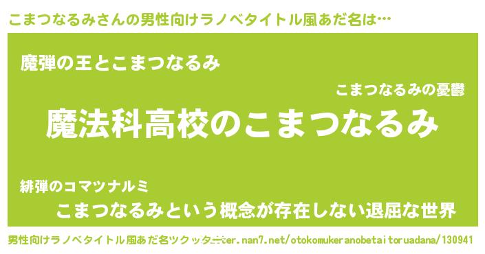 | 女子向けラノベタイトル風あだ名 | 『こまつなるみなんてお断りですっ。』 |