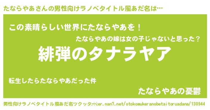 | 胡散臭い通販商品みたいなあだ名 | 『ハリウッド女優が絶賛した世界で10本だけ現存している希少なブランデー…その名も「たならやあ」』 |