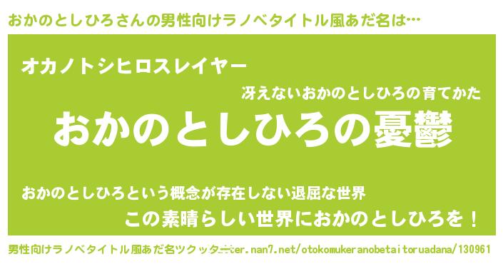 | 胡散臭い通販商品みたいなあだ名 | 『必ず成功する霊験あらたかなお札…その名も「おかのとしひろ」』 |