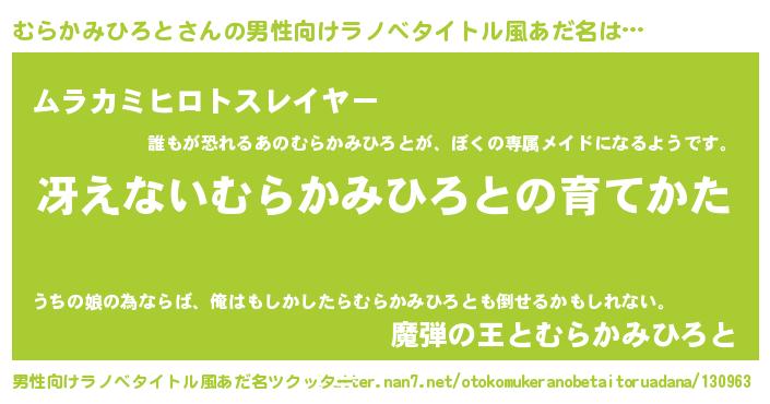 | ヒーロー風カッコイイあだ名 | 『仮面ムラダー』『ネオムラカミヒロト』 |