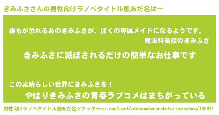 | 意味不明あだ名 | 『永久保存きみふさ』『自称きみふさ』 |