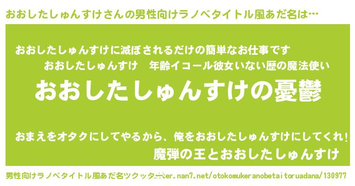| 胡散臭い通販商品みたいなあだ名 | 『モテモテ間違いなし水晶球…その名も「おおしたしゅんすけ」』 |