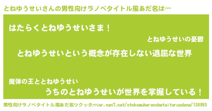 | 胡散臭い通販商品みたいなあだ名 | 『絶対に幸福をもたらす健康食品…その名も「とねゆうせい」』 |