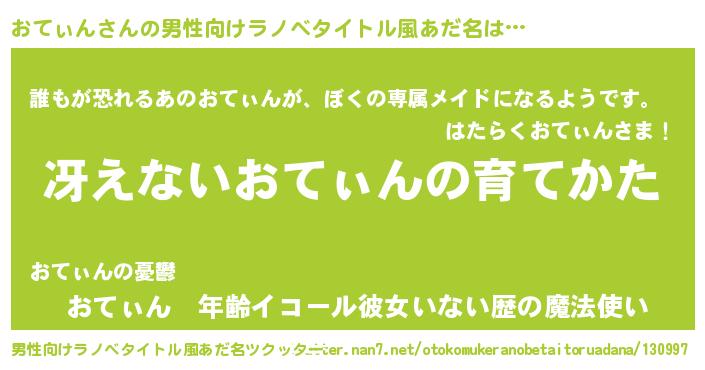 | 胡散臭い通販商品みたいなあだ名 | 『来世でも幸せになれる健康食品…その名も「おてぃん」』 |