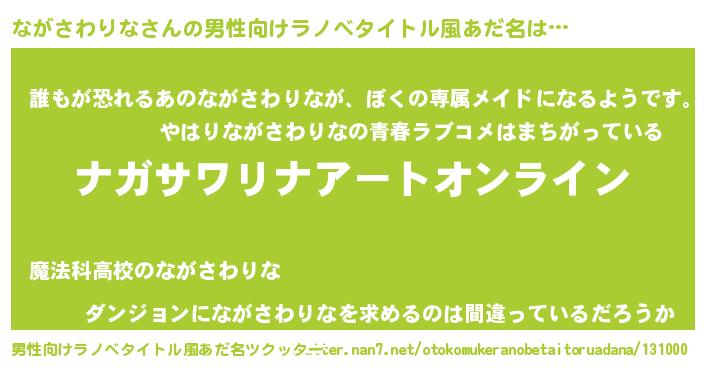 | 胡散臭い通販商品みたいなあだ名 | 『億万長者になれる霊験あらたかなお札…その名も「ながさわりな」』 |