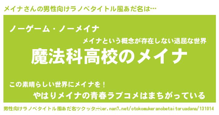 | 女子向けラノベタイトル風あだ名 | 『メイナなんてお断りですっ。』 |
