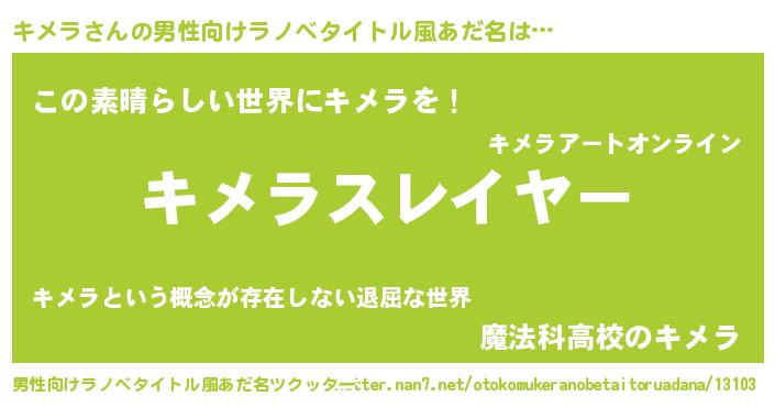| 意味不明あだ名 | 『めかぶ科キメラ属』『自称キメラ』 |