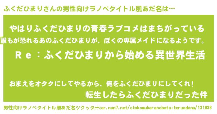 | 女子向けラノベタイトル風あだ名 | 『ふくだひまりストレイドッグス』 |