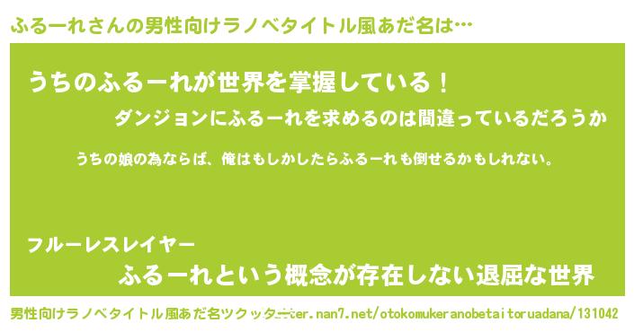 | 女子向けラノベタイトル風あだ名 | 『ふるーれの婚約者』 |