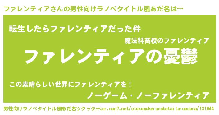 | 女子向けラノベタイトル風あだ名 | 『ファレンティア姫と円卓の騎士』 |