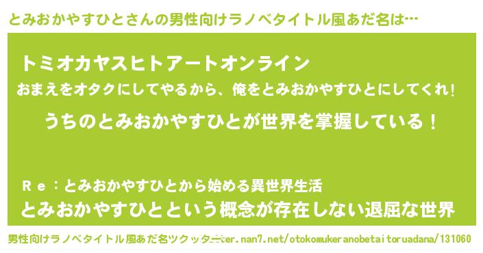 | ヘコむあだ名 | 『とみにー』『とみおかやすひと(爆)』 |
