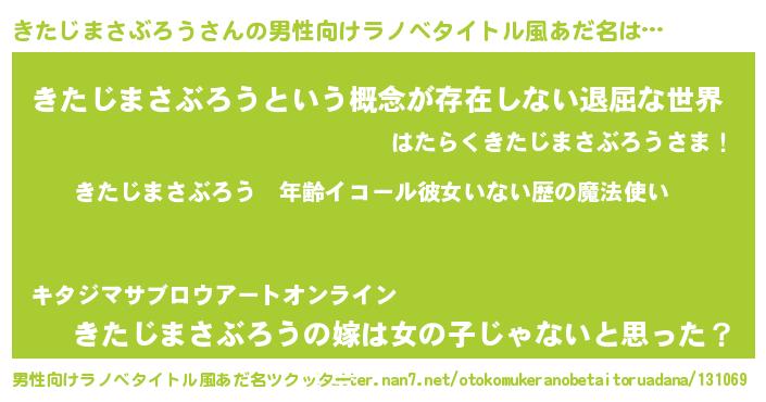 | 女子向けラノベタイトル風あだ名 | 『きたじまさぶろうの玉の輿計画!』 |