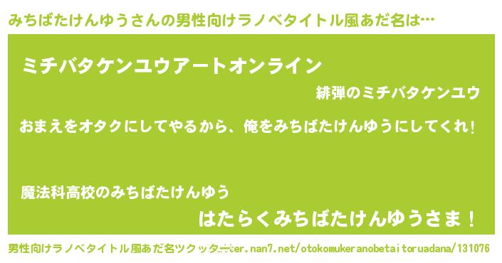| 女子向けラノベタイトル風あだ名 | 『みちばたけんゆう恋絵巻』 |