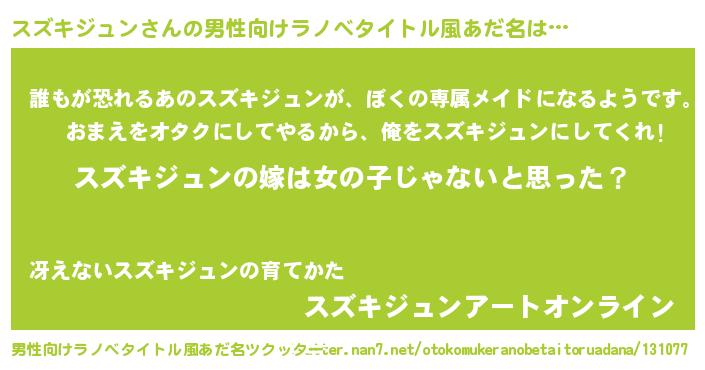 | 胡散臭い通販商品みたいなあだ名 | 『全米が絶賛したサプリメント…その名も「スズキジュン」』 |