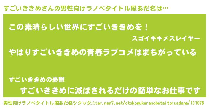 | 女子向けラノベタイトル風あだ名 | 『すごいききめの雑貨屋さん』 |