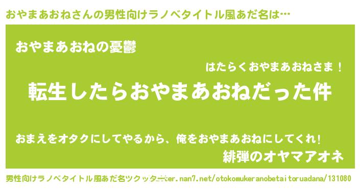 胡散臭い通販商品みたいなあだ名 | 『モテモテ間違いなし霊験あらたかなお札…その名も「おやまあおね」』 |