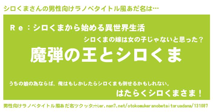 | 意味不明あだ名 | 『住所不定無職シロくま(14歳)』 |