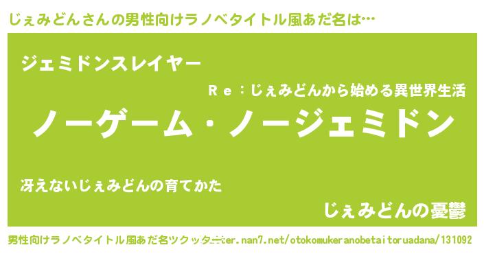 | 女子向けラノベタイトル風あだ名 | 『死神じぇみどんの再婚』 |