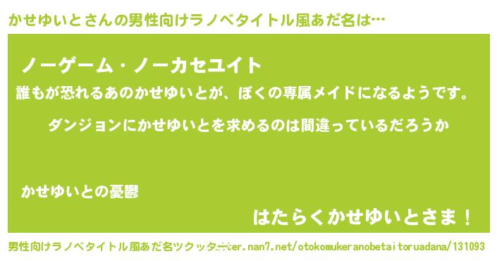 | 胡散臭い通販商品みたいなあだ名 | 『信頼と実績のサプリメント…その名も「かせゆいと」』 |
