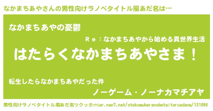 | 胡散臭い通販商品みたいなあだ名 | 『必ず成功するブレスレット…その名も「なかまちあや」』 |